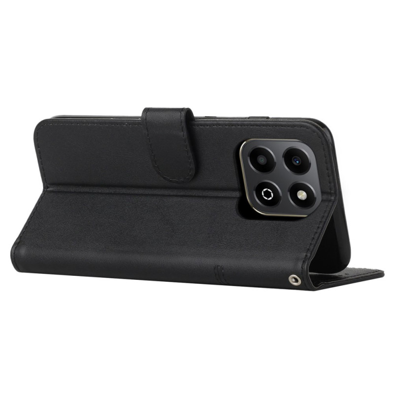 Stijlvolle portemonneehoes van gestructureerd PU-leer voor Honor X6b 4G / X6a 4G. Voorzien van kaartsleuven, portemonnee en geïntegreerde handsfree houder. Inclusief veilige magnetische sluiting en praktische handriem. Volledige bescherming tegen schokken.