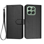 Elegante portemonneehoes met koolstofvezeltextuur voor Honor X6b 4G / X6a 4G. Praktisch ontwerp met 3 kaartsleuven, geldvak, verstelbare houder en meegeleverde polsband. Optimale bescherming met veilige magnetische sluiting.