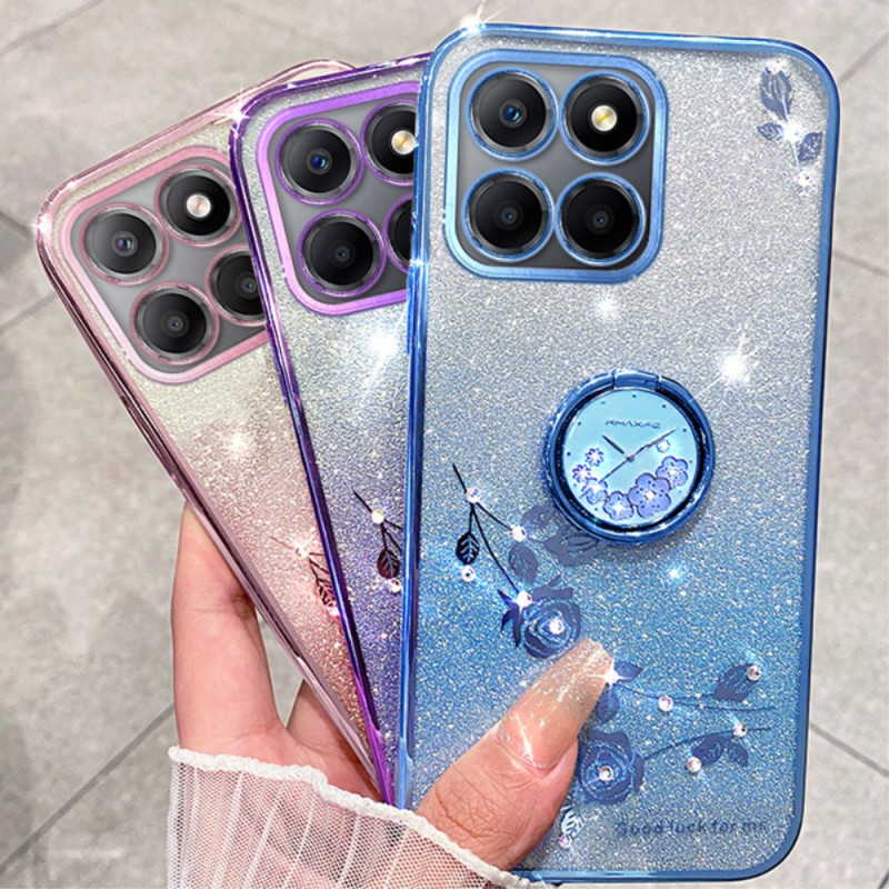 Bescherm uw Honor X6a 4G in stijl met deze TPU case versierd met strass-steentjes en een glimmende afwerking. De geïntegreerde roterende ring zorgt voor een stevige grip en maakt handsfree kijken mogelijk.
