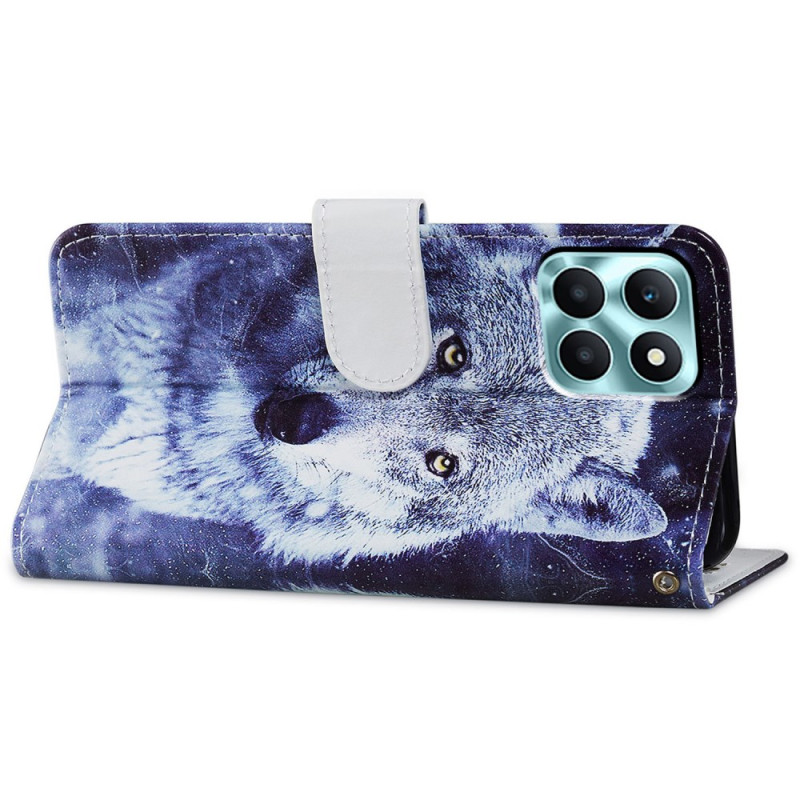 Découvrez cet élégant étui à rabat pour Honor X6a 4G orné d'un superbe motif loup blanc. Alliant style et fonctionnalité, il offre une protection complète avec son cuir synthétique de qualité, ses emplacements pour cartes et son support intégré.