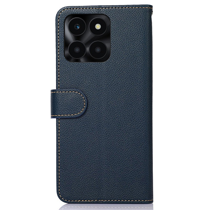 Étui portefeuille élégant en cuir PU texture litchi pour Honor X6a 4G. Protection RFID intégrée, 3 emplacements pour cartes, compartiment pour billets et fonction support. Coque robuste TPU avec fermeture magnétique sécurisée.