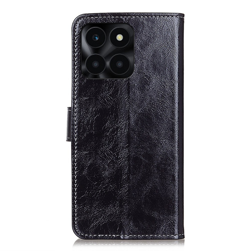 Étui portefeuille élégant en cuir PU texture cheval fou vintage pour Honor X6a 4G. Design multifonctionnel avec porte-cartes, compartiment billets, support pliable et fermeture magnétique. Protection complète contre rayures et chutes.