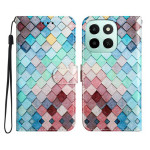 Elegante portemonnee van imitatieleer met trendy rasterpatroon. Voorzien van 3 kaartsleuven, zijvak en houderfunctie met meerdere hoeken. Beveiligde magnetische sluiting en afneembare handriem inbegrepen voor gemakkelijk dragen...