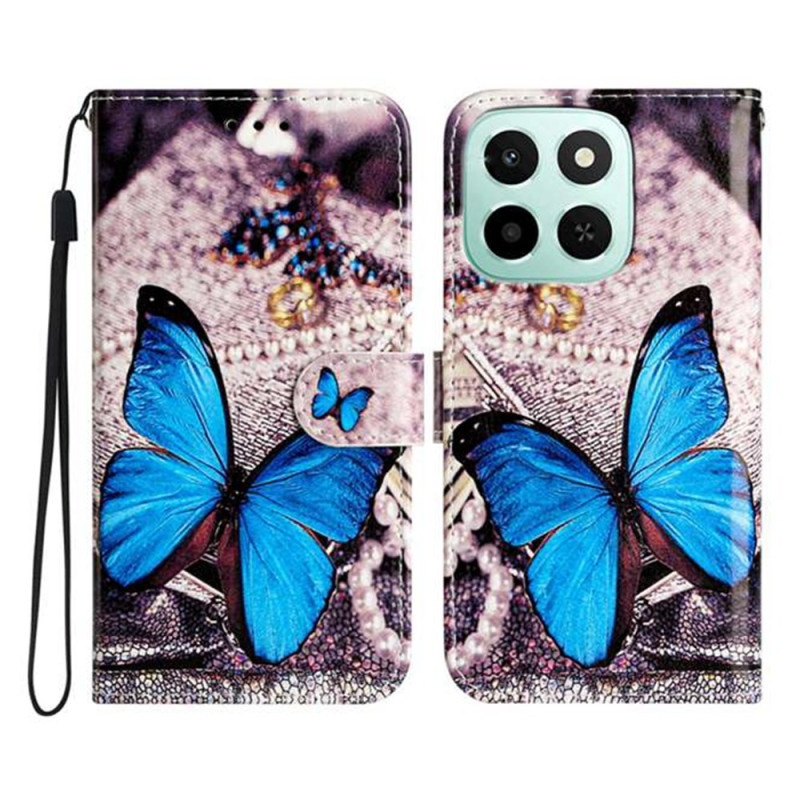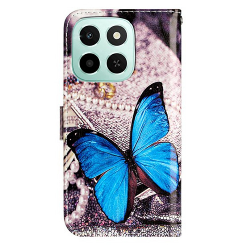 Elegant portemonnee hoesje met blauw vlindermotief voor Honor X6c 4G / X5b / X5b Plus. Geraffineerd ontwerp combineert stijl en functionaliteit. Voorzien van 3 kaartsleuven, verstelbare standaard, veilige magnetische sluiting en afneembare handband...