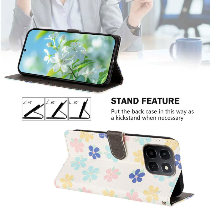 Bescherm je Honor in stijl met deze portemonneehoes met levendig bloemmotief. Met 2 kaartsleuven, een geldvakje en een afneembare polsband combineert hij stijl en functionaliteit voor dagelijks gebruik. De standaardfunctie maakt hem ideaal voor handsfree kijken.