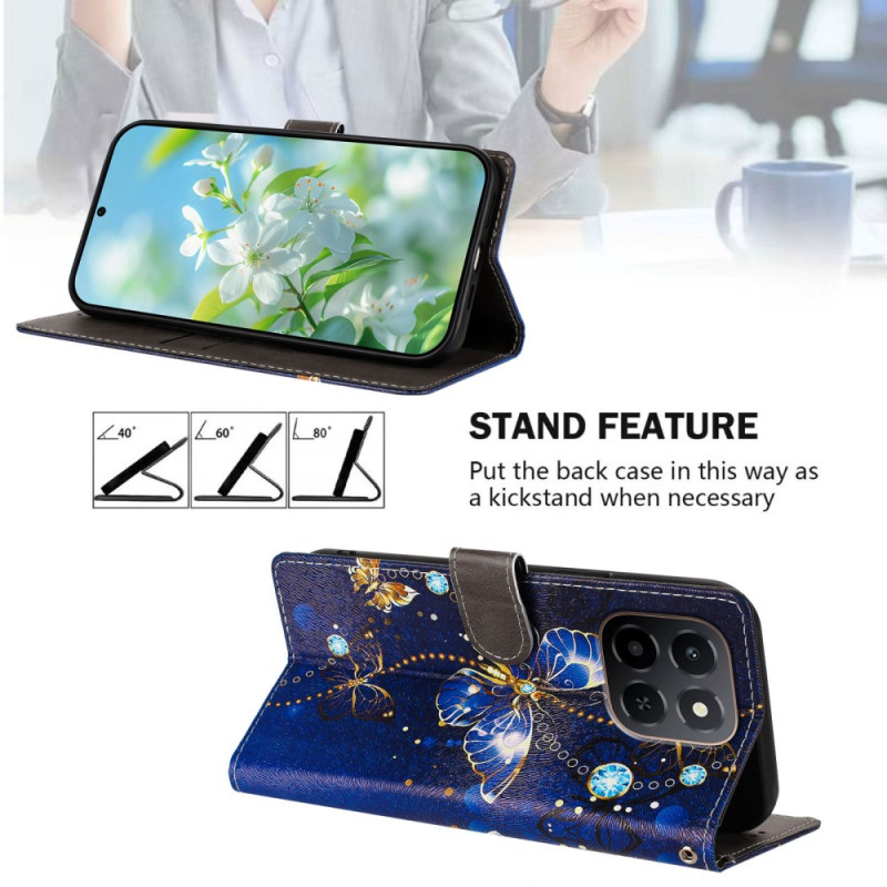 Bescherm uw Honor X6c 4G / X5b / X5b Plus in stijl met deze portemonneehoes met blauw vlindermotief. Met 2 kaartsleuven, een geldvakje en een standaardfunctie combineert hij stijl en functionaliteit. De afneembare handriem maakt het gemakkelijk om...