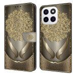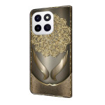 Bescherm je Honor X6c 4G in stijl met deze elegante wallet case met klep. Het heeft een prachtig patroon van glanzende gouden bloemen en combineert eersteklas bescherming met praktische functionaliteit met een opvouwbare standaard en geïntegreerde opbergvakken.