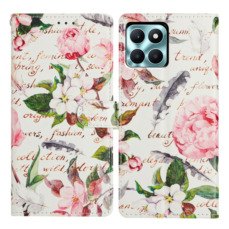 Bescherm uw Honor X6c 4G in stijl met deze multifunctionele portemonneehoes. Verfijnd ontwerp met groene bloemmotieven, geïntegreerde houder voor handsfree kijken, 2 kaartsleuven en 1 fotovak. Beveiligde magnetische sluiting en afneembare handriem inbegrepen voor praktisch dagelijks dragen.