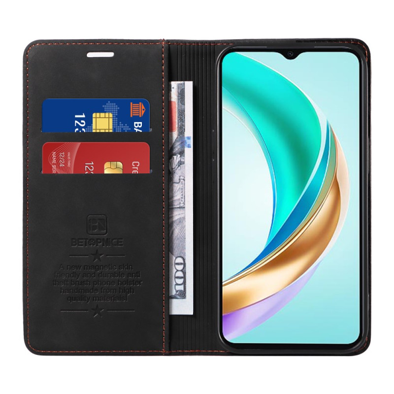 Bescherm uw Honor X6c 4G / X6b 4G in stijl met deze premium lederen portemonneehoes. Met een veilige magnetische sluiting, RFID-technologie tegen piraterij en een geïntegreerde standaard voor handsfree kijken.