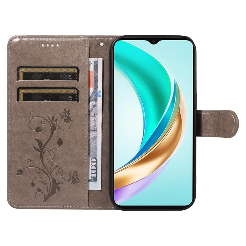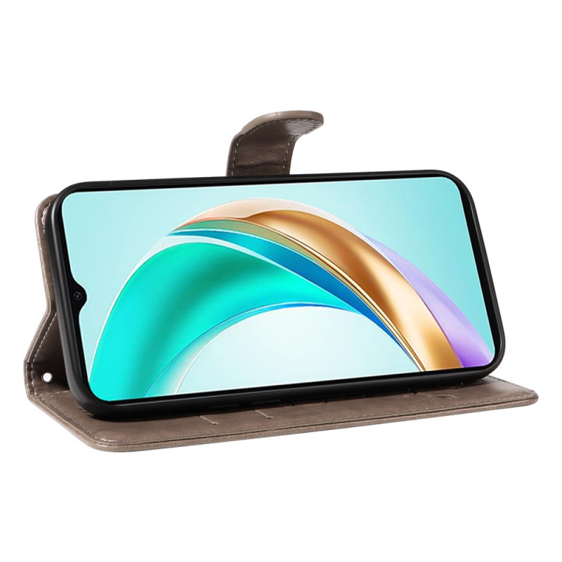 Elegante portemonneehoes met geprint bloemmotief voor Honor X6c 4G / X6b 4G / X6a 4G / X5b / X5b Plus. Premium lederen ontwerp met steunfunctie, kaartsleuven en praktische handriem. Volledige bescherming en verfijnde stijl voor uw telefoon.