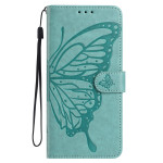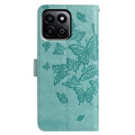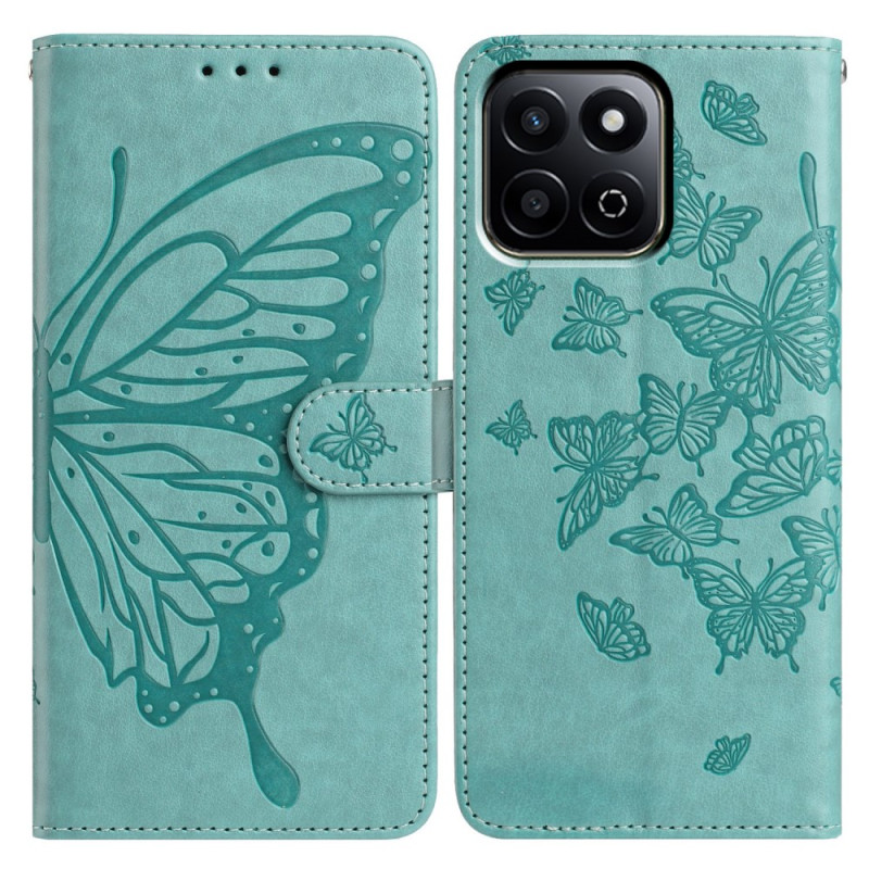 Elegante hoes voor Honor X6c 4G met vlindermotief in reliëf. Combineert portemonnee en bescherming met geïntegreerde standaard, veilige magnetische sluiting en praktische handriem. Bewaar je pasjes en geniet van handsfree gebruik.