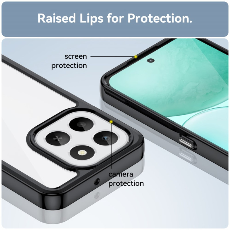 Bescherm uw Honor X6c 4G met deze hybride hoes die zacht TPU en stijf acryl combineert. Elegant transparant ontwerp met versterkte hoekbescherming, verhoogde randen voor de camera en krasbestendige afwerking.