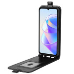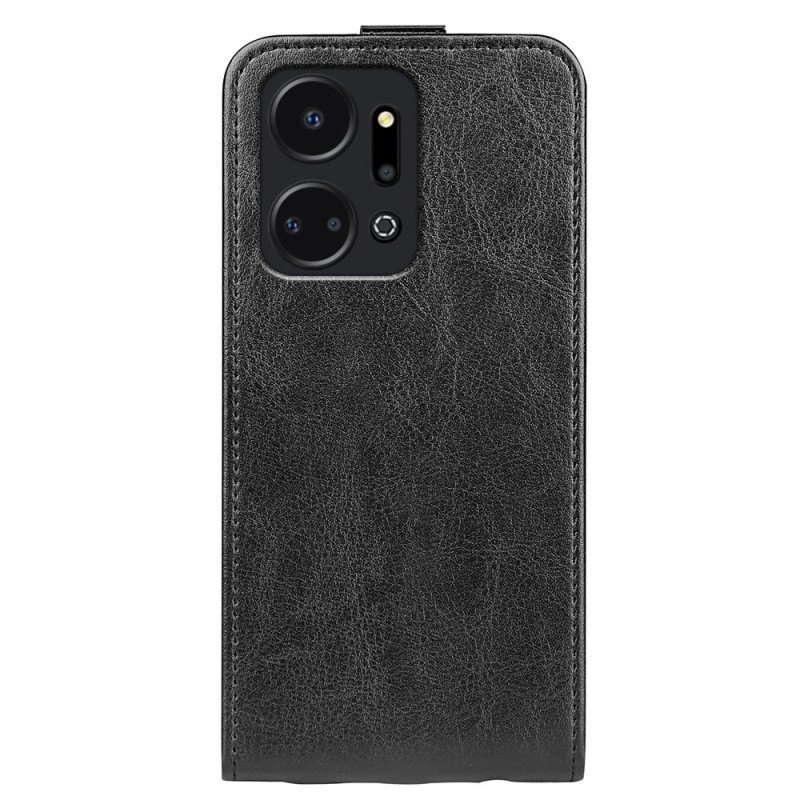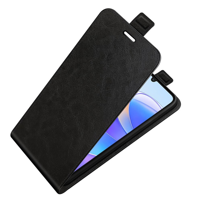 Elegante hoes met verticale flap voor Honor X7a 4G. Praktisch ontwerp met neerwaartse opening voor gebruik met één hand, geïntegreerde kaarthouder en veilige magnetische sluiting. Premium getextureerde afwerking voor een comfortabele grip.