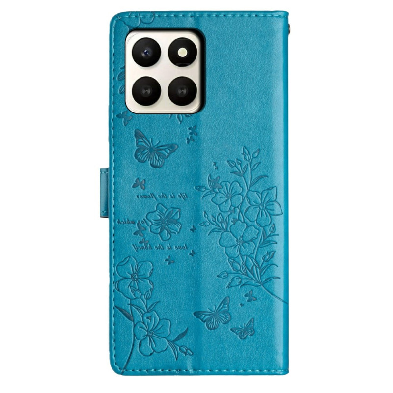 Elegante portemonneehoes voor Honor X7d 5G met bloemen- en vlinderprint. PU-leren klepontwerp met geïntegreerde standaard, kaartsleuven en praktische handriem. Volledige bescherming tegen stoten en krassen.