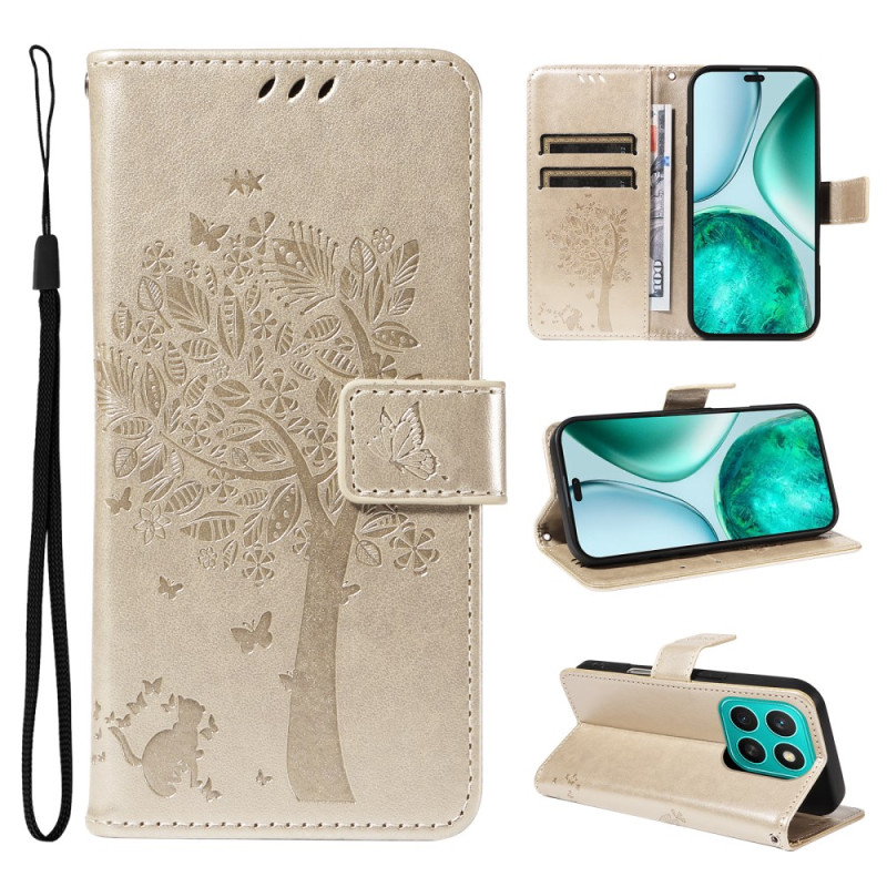 Ontdek onze elegante portemonneehoes voor Honor X8c 4G. Gemaakt van hoogwaardig PU-leer met een bedrukt boom- en kattenmotief, biedt het stevige bescherming en een unieke stijl.