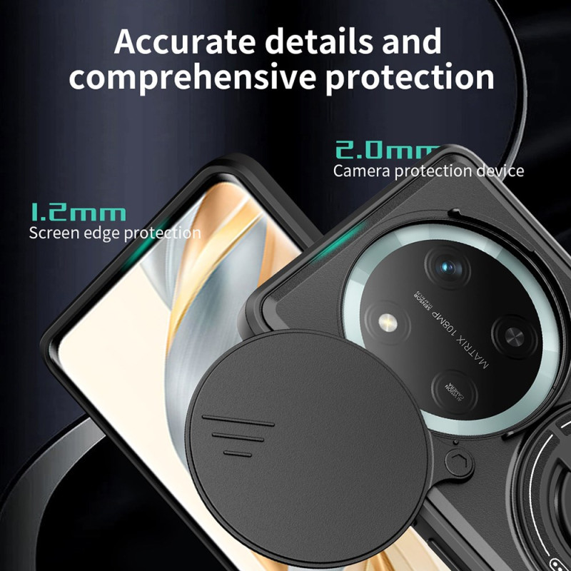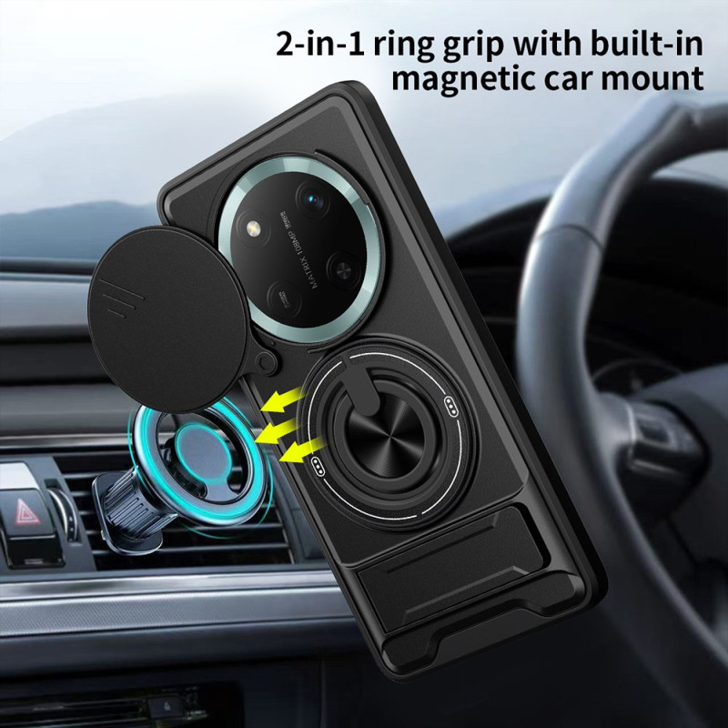Bescherm je Honor Magic 7 Lite / X9c met deze robuuste magnetische hoes. Dubbele TPU- en PC-bescherming, 360° draaibare ring, geïntegreerde uitklapbare standaard en verschuifbare camerabescherming voor optimale veiligheid.