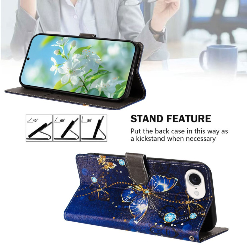 Protégez votre iPhone 17E / 16E avec élégance grâce à cet étui portefeuille au motif papillon bleu. Doté de 2 emplacements pour cartes, d'une poche pour espèces et d'une dragonne détachable, il allie style et fonctionnalité pour un usage quotidien pratique.