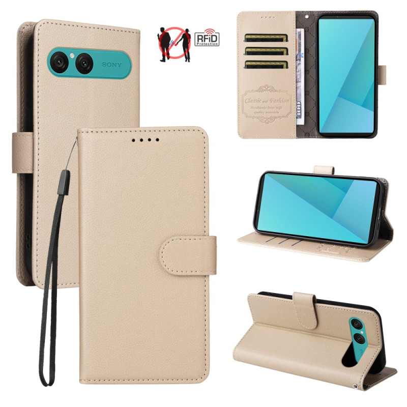 Ontdek onze stijlvolle en functionele beschermhoes voor Sony Xperia 10 VII. Hij is gemaakt van hoogwaardig PU-leer en biedt volledige bescherming met RFID-blokkeringstechnologie, drie kaartsleuven, een ticketvakje, een standaardfunctie en een afneembare polsband voor optimale draagbaarheid.