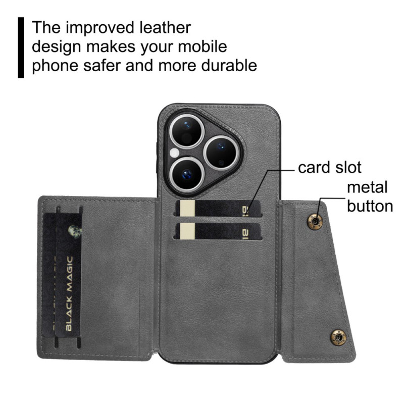 Multifunctionele hoes voor de Huawei Pura 80 die stijl en functionaliteit combineert. Voorzien van geïntegreerde kaarthouders, een verstelbare standaard voor handsfree kijken en een veilige dubbele kliksluiting.