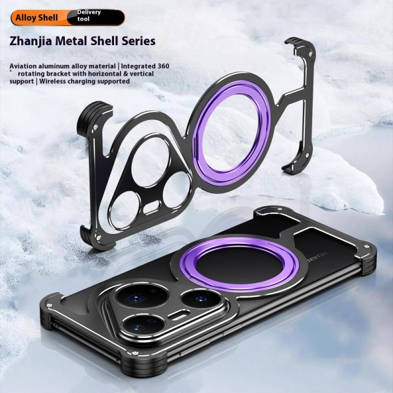 Bescherm je Huawei Pura 80 Pro met deze aluminiumlegering case van luchtvaartkwaliteit. Voorzien van 360° draaibare ondersteuning, geventileerd anti-oververhittingsontwerp, versterkte hoekbescherming en MagSafe oplaadcompatibiliteit. Inclusief volledige bescherming voor fotolenzen.