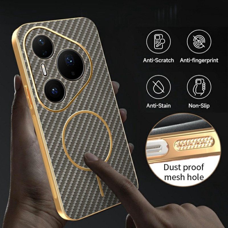 Eersteklas bescherming voor je Huawei Pura 80 Pro met stijlvolle gegalvaniseerde afwerking. Flexibele TPU constructie voor superieure schokabsorptie en een goede pasvorm. Krasbestendige koolstofvezeltextuurcoating voor een onberispelijk uiterlijk.