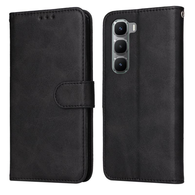 Stijlvolle wallet case voor Infinix Hot 60 Pro 4G met kaartvakjes, standaardfunctie en veilige magnetische sluiting. Volledige 360° bescherming dankzij de versterkte binnenkant. Inclusief handriem voor gemakkelijk dragen.