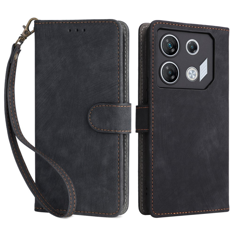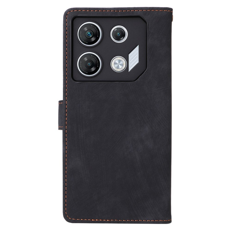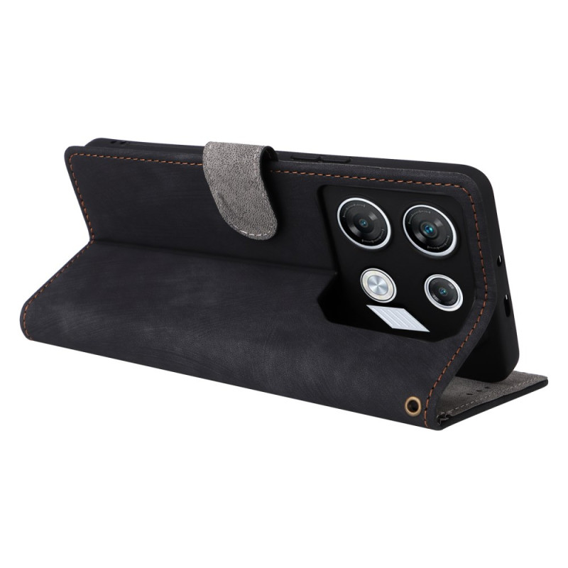 Stijlvol portemonnee hoesje voor Infinix GT 10 Pro 5G met RFID-blokkeringstechnologie. Voorzien van 3 kaartsleuven, handsfree ondersteuning en veilige magnetische sluiting. Inclusief een praktische handriem voor gemakkelijk dragen.