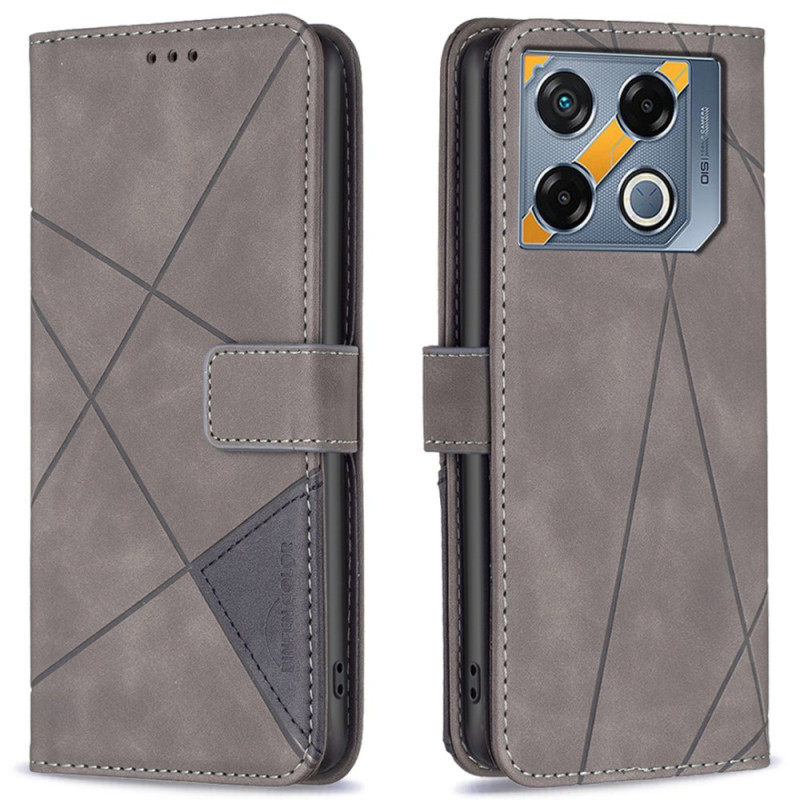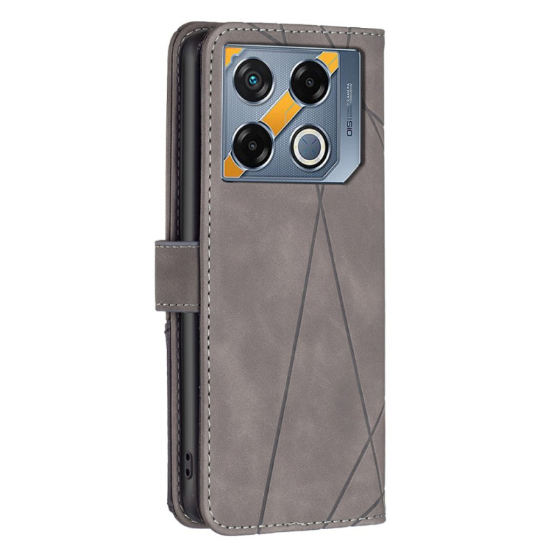 Stijlvolle portemonneehoes voor de Infinix GT 20 Pro 5G met geometrisch reliëfpatroon. Combineert volledige bescherming, verstelbare ondersteuning en portemonnee-functionaliteit met 3 kaartsleuven.