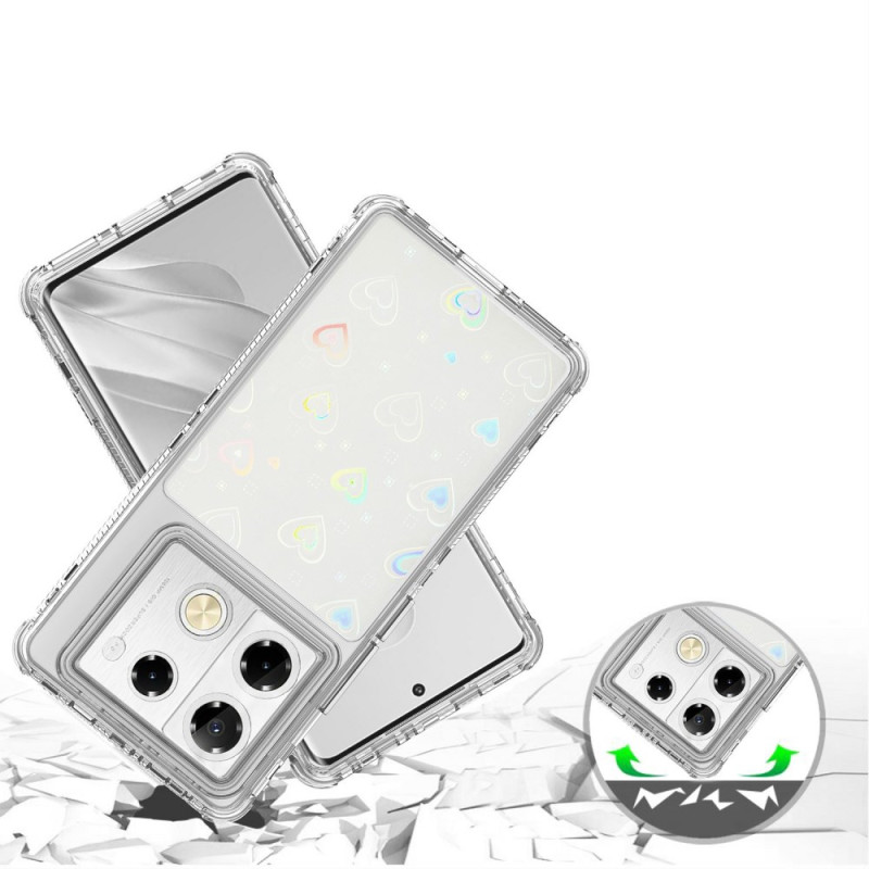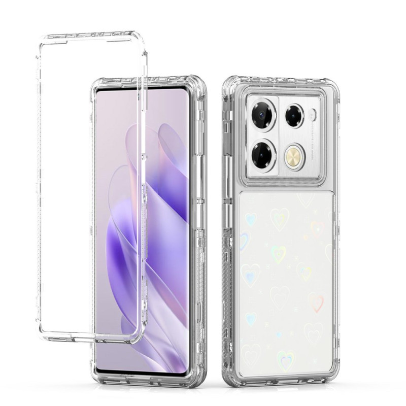 Bescherm je Infinix Note 40 / GT 20 Pro 5G in stijl met deze innovatieve transparante hoes. De drie-in-een structuur biedt volledige 360-graden bescherming, terwijl de laser-geprinte holografische film een persoonlijk tintje toevoegt.