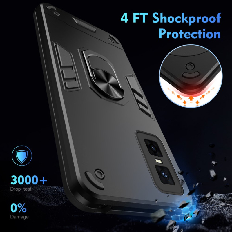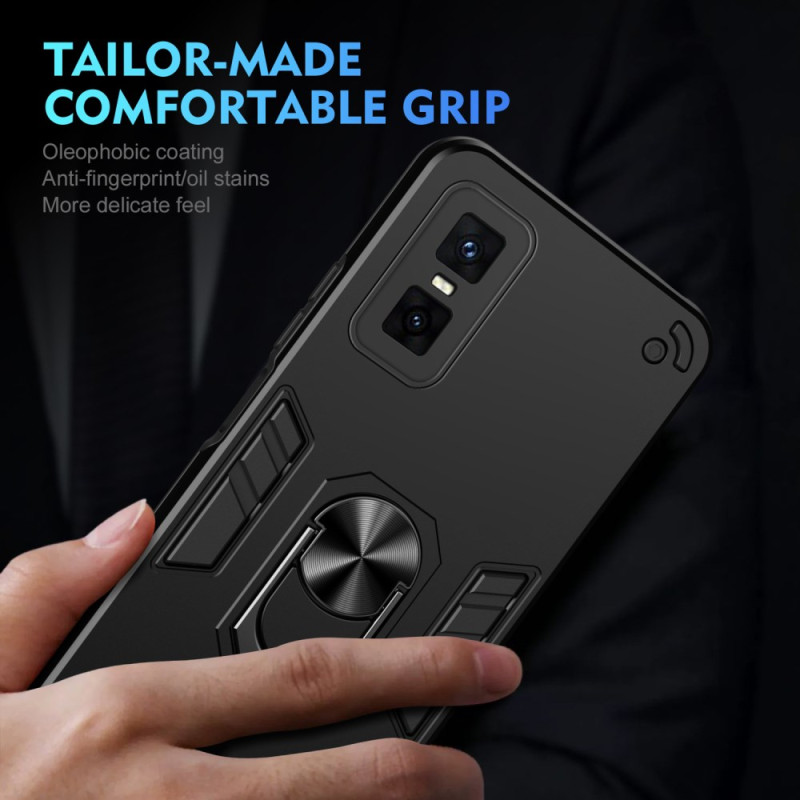 Bescherm je Infinix GT 30 Pro 5G met deze robuuste hoes met roterende steunring en bescherming tegen vallen. Het is compatibel met autohouders en biedt volledige toegang tot de functies van je telefoon terwijl het scherm en de camera tegen krassen worden beschermd.