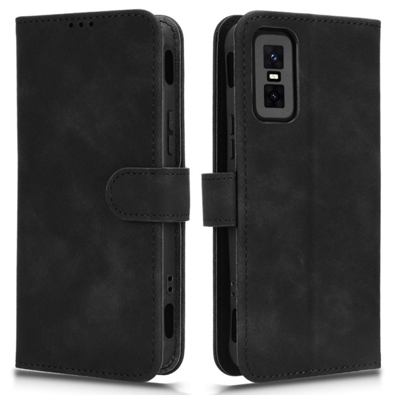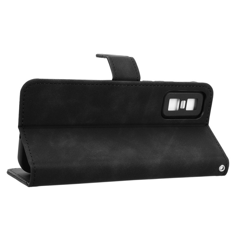 Stijlvolle portemonneehoes voor de Infinix GT 30 Pro 5G met soft-touch gevoel. Voorzien van 2 kaartsleuven, 1 geldvakje en een verstelbare standaard. Beveiligde magnetische sluiting en polsband inbegrepen voor handig dagelijks dragen.