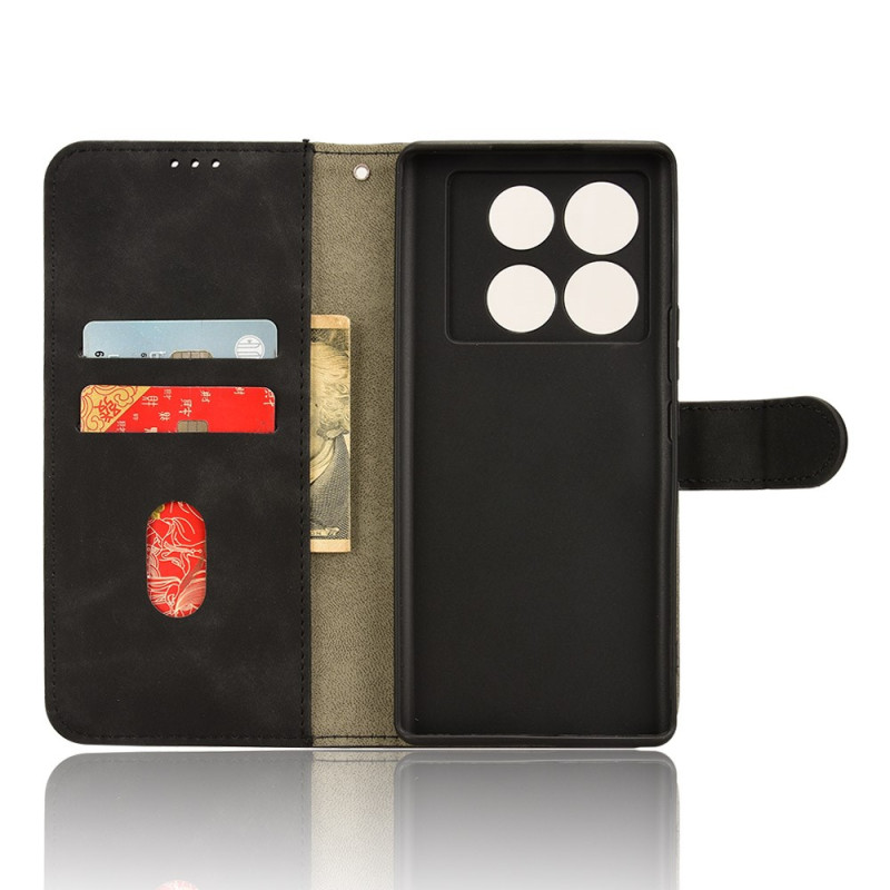 Stijlvolle PU lederen portemonnee hoes met magnetische flap voor de Infinix Note 40 5G. Voorzien van 2 kaartsleuven, 1 geldvakje en verstelbare standaard. Volledige bescherming tegen stoten en krassen met praktische handriem.