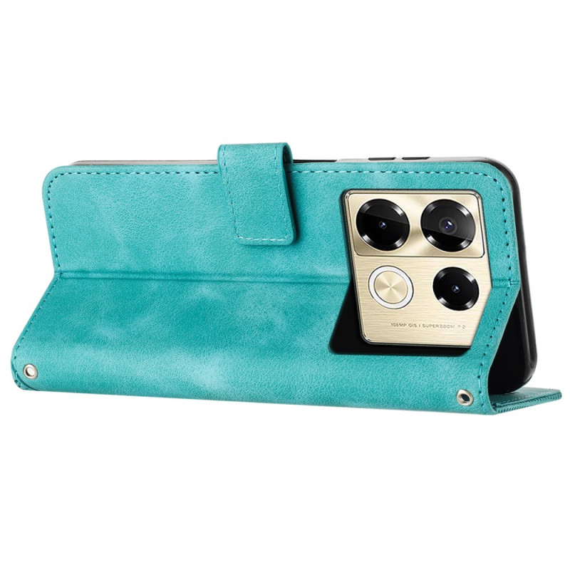 Elegante portemonneehoes voor de Infinix Note 40 Pro 5G / 4G Pro die stijl en functionaliteit combineert. Voorzien van bedrukt driehoekig patroon, 3 kaartsleuven, standaardfunctie en afneembare polsband. Volledige bescherming met veilige magnetische sluiting.