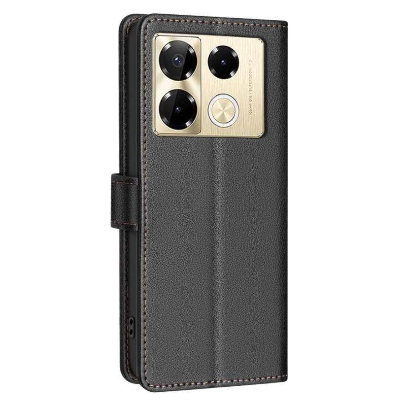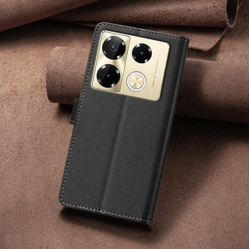 Stijlvolle portemonnee hoes met geïntegreerde standaard voor Infinix Note 40 Pro 5G / 4G / 40 Pro Plus 5G. Inclusief 3 kaartsleuven, 1 notitievakje en RFID-blokkeringstechnologie. Veilige magnetische sluiting en volledige bescherming tegen alledaagse stoten.
