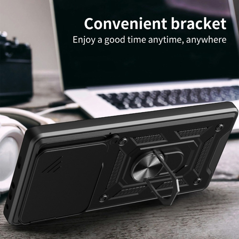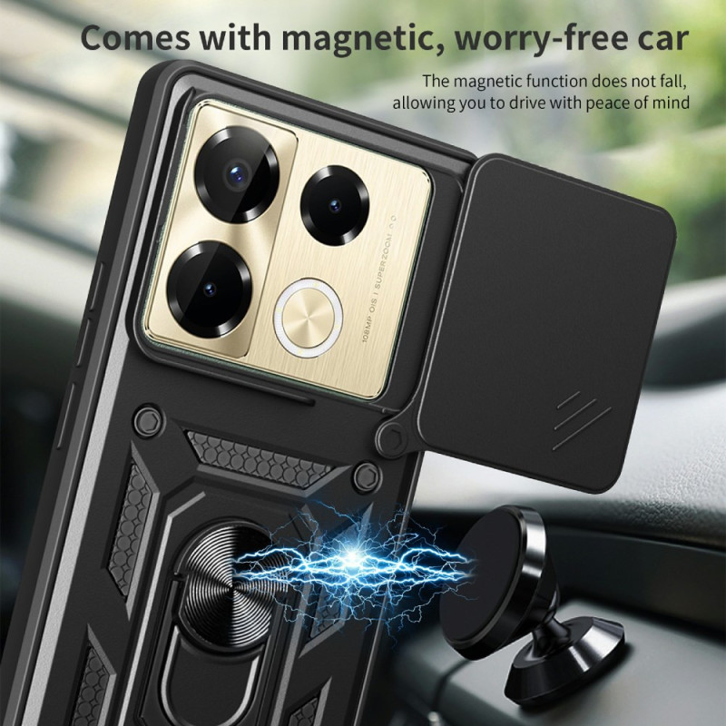 Bescherm je Infinix Note 40 Pro met deze eersteklas case met een verschuifbare lenskap, multi-angle roterende houder en slagvastheid op militair niveau. Compatibel met magnetische autohouders.
