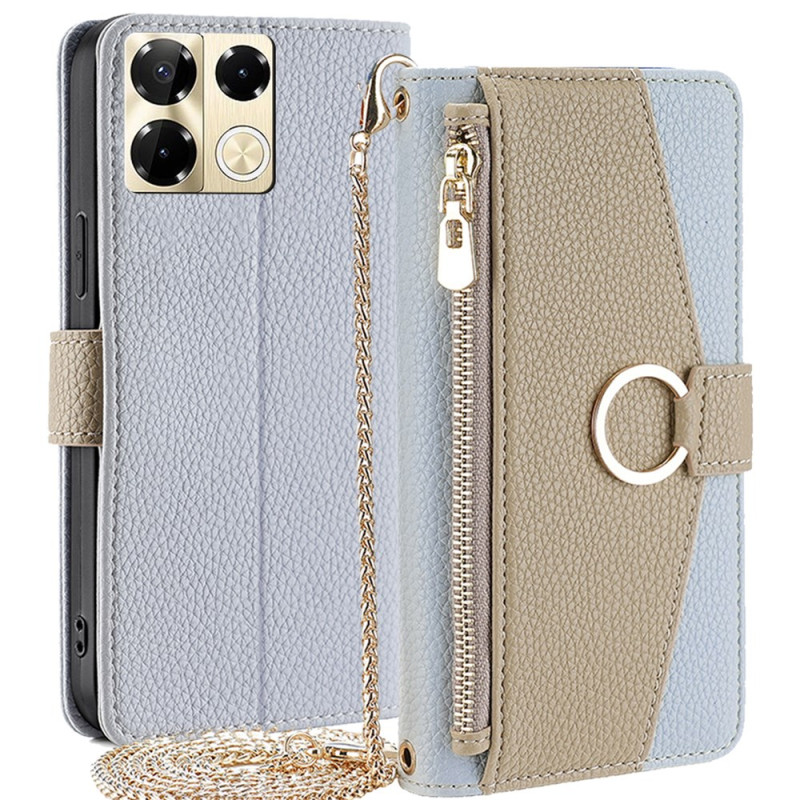 Stijlvolle PU lederen portemonnee hoes voor Infinix Note 40 Pro 5G. Multifunctioneel ontwerp met kaarthouder, ticketvak, veilige magneetsluiting en afneembare schouderriem. Optimale bescherming en praktisch voor elke dag.