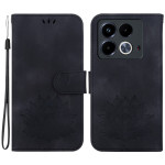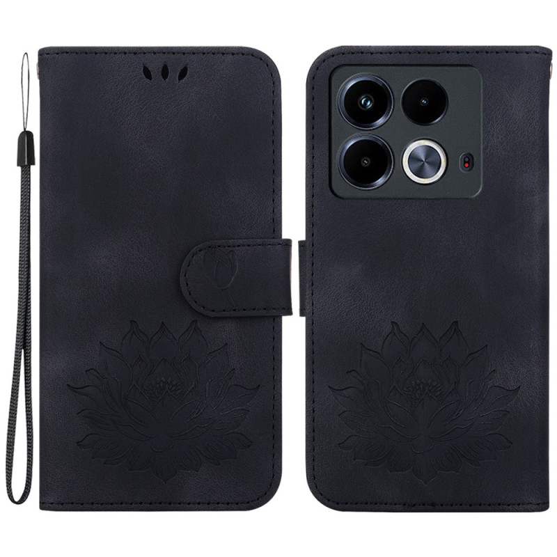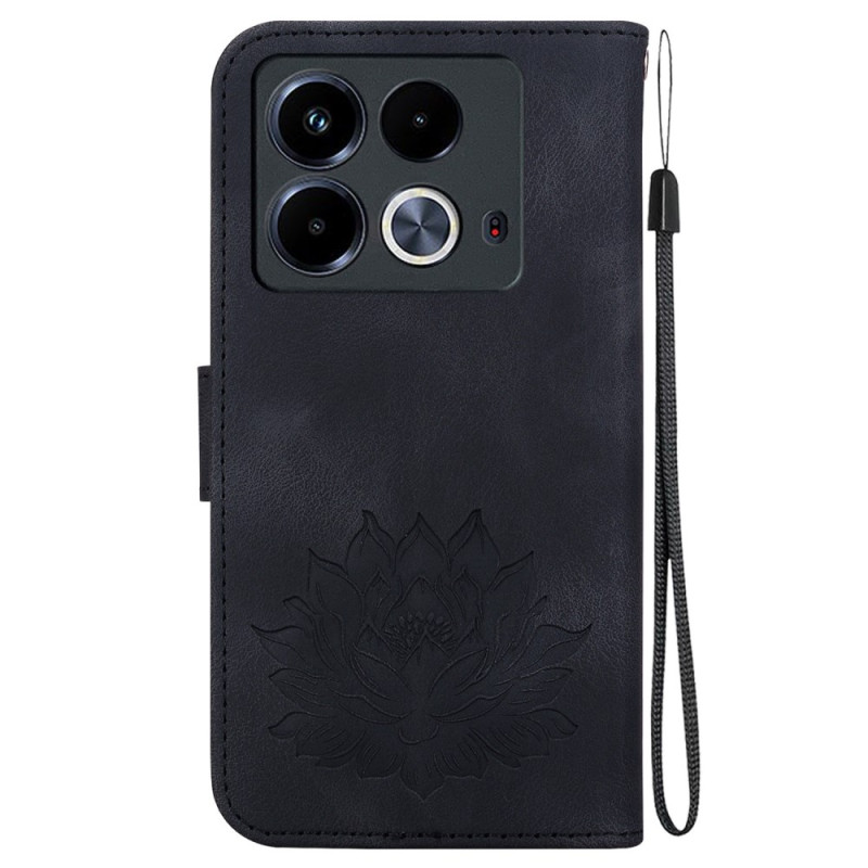 Elegant etui voor de Infinix Note 40 met prachtige lotusprint. Premium PU-leren ontwerp met robuuste TPU-binnenzijde. Voorzien van 3 kaartsleuven, een zijvak en een standaardfunctie.