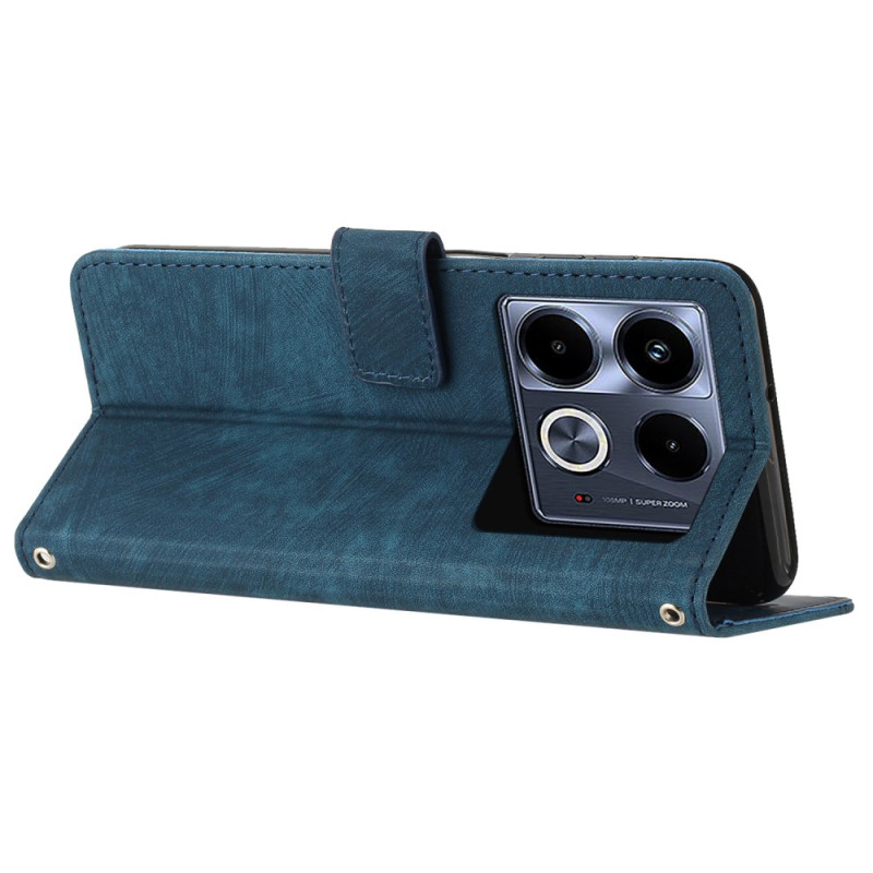 Ontdek onze elegante portemonnee voor de Infinix Note 40 van eersteklas PU-leer met bedrukte lijnen. Bescherm je telefoon in stijl en geniet van 3 kaartsleuven, een notitievak en een praktische standaardfunctie. Inclusief veilige magneetsluiting en afneembare handriem.