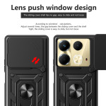 Bescherm je Infinix Note 40 met dit innovatieve hoesje met een verschuifbaar, stofdicht cameradeksel, een handsfree draaibare houder en stootbescherming van militaire kwaliteit. Compatibel met magnetische houders.