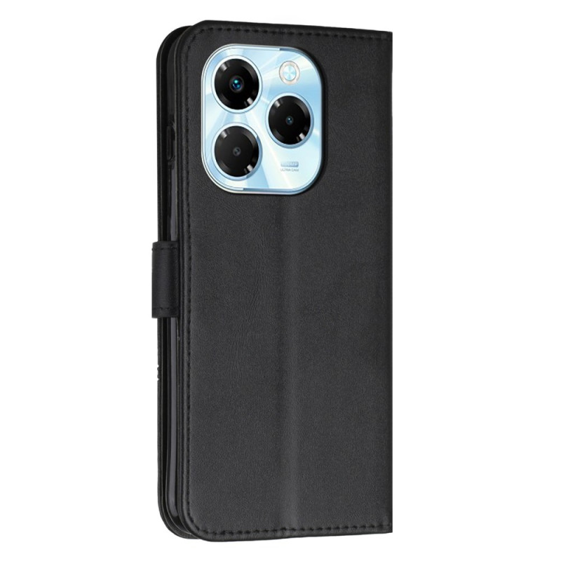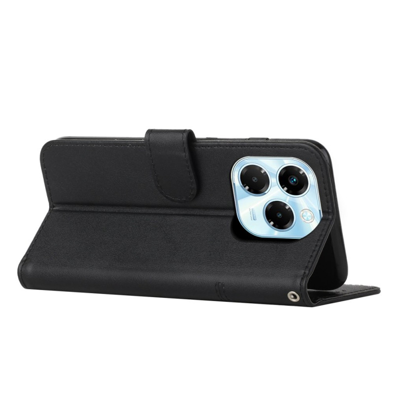 Elegante portemonneehoes van PU-leer met structuur voor de Infinix Note 40X 5G. Handsfree functie, 2 kaartsleuven, veilige magnetische sluiting. Volledige bescherming tegen alledaagse schokken met praktische meegeleverde handriem.