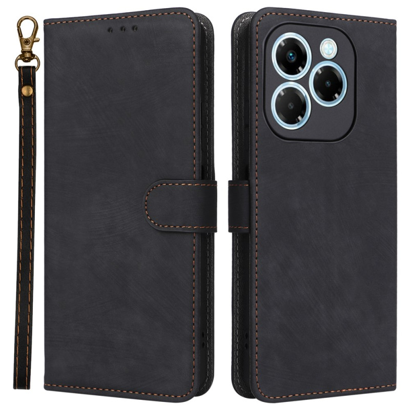 Geraffineerde PU lederen portemonnee hoesje voor de Infinix Note 40X 5G. Geïntegreerde RFID-bescherming, 3 kaart- en portemonneesleuven. Verstelbare handsfree houder en veilige magnetische sluiting. Inclusief handriem voor gemakkelijk dragen.