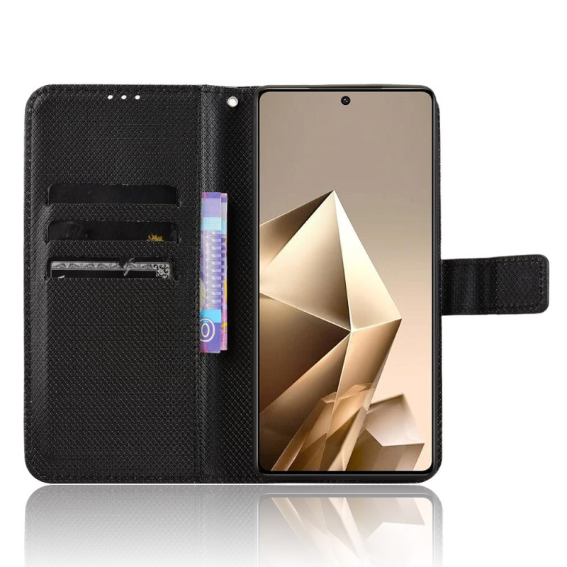 Ontdek onze elegante wallet case voor de Infinix Note 50 4G / Note 50 Pro 4G, die stijl en functionaliteit combineert. Met zijn geraffineerde diamantstructuur, kaartsleuven en geïntegreerde opvouwbare standaard biedt deze case volledige bescherming...