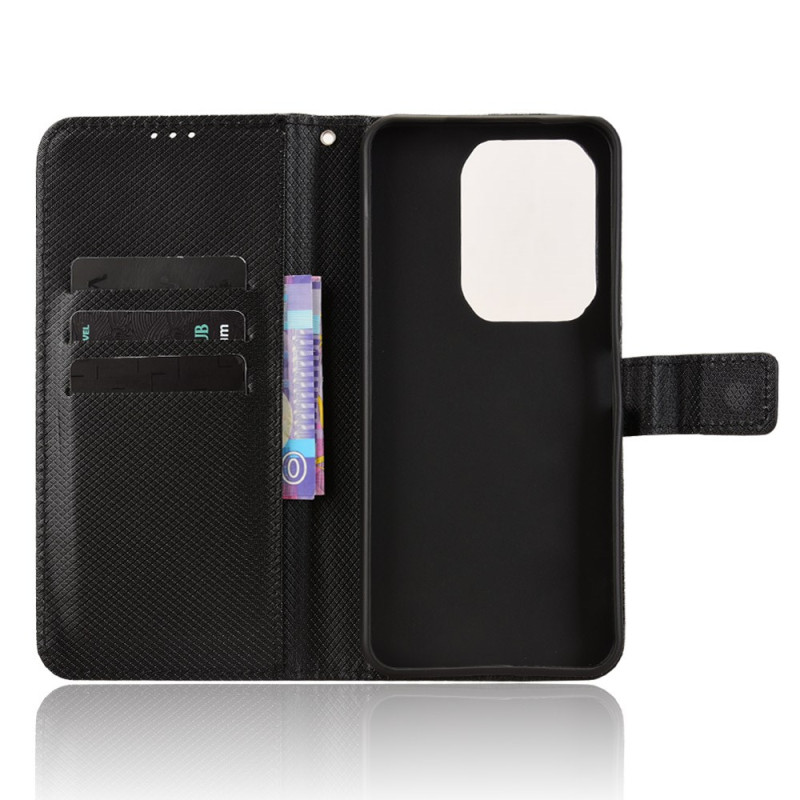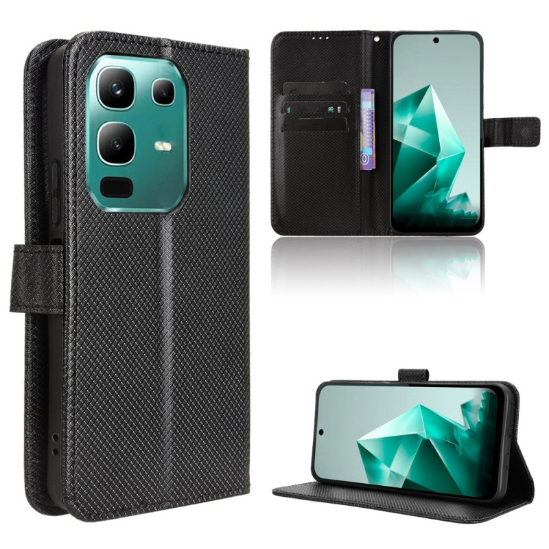 Bescherm je Infinix Note 50X 5G in stijl met deze PU lederen portemonnee hoes met diamantstructuur. Met kaartsleuven, een geldvak en een praktische handriem combineert hij stijl en functionaliteit.