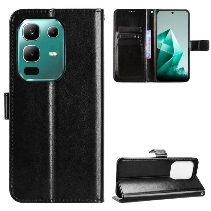 Stijlvolle PU lederen portemonnee hoes voor de Infinix Note 50X 5G. Voorzien van 3 kaartsleuven, notitievak, handsfree functie en veilige magnetische sluiting. Wordt geleverd met een praktische handriem voor gemakkelijk dragen.