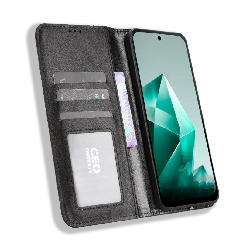 Bescherm je Infinix Note 50X 5G in stijl met deze retro PU lederen portemonnee hoes. Met kaartsleuven, een verstelbare standaard en een automatische magnetische sluiting combineert hij vintage elegantie met all-round bescherming.