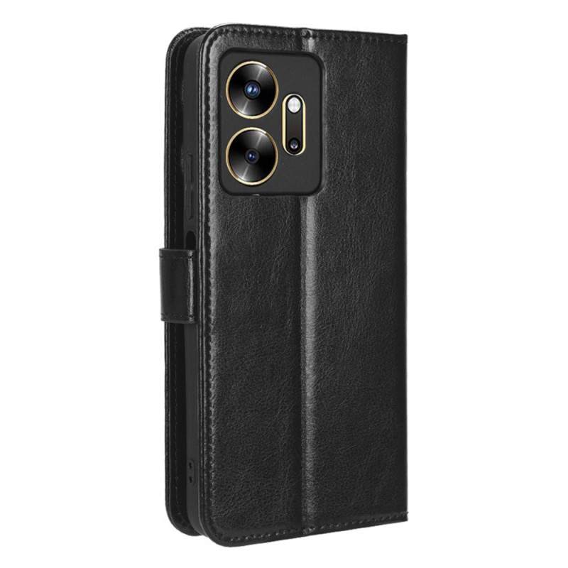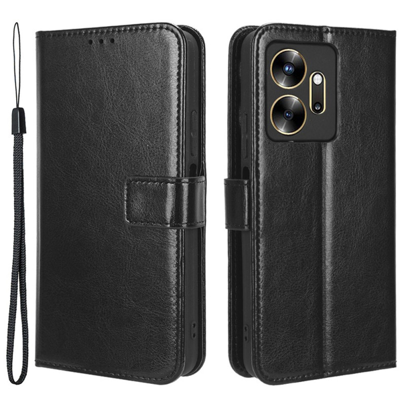 Stijlvolle wallet case voor Infinix Zero 20 4G X6821 die volledige bescherming biedt. Gerijpte lederen textuur, 3 kaartsleuven, 1 compartiment voor bankbiljetten en handsfree ondersteuningsfunctie. Beveiligde magnetische sluiting met inbegrepen handriem.
