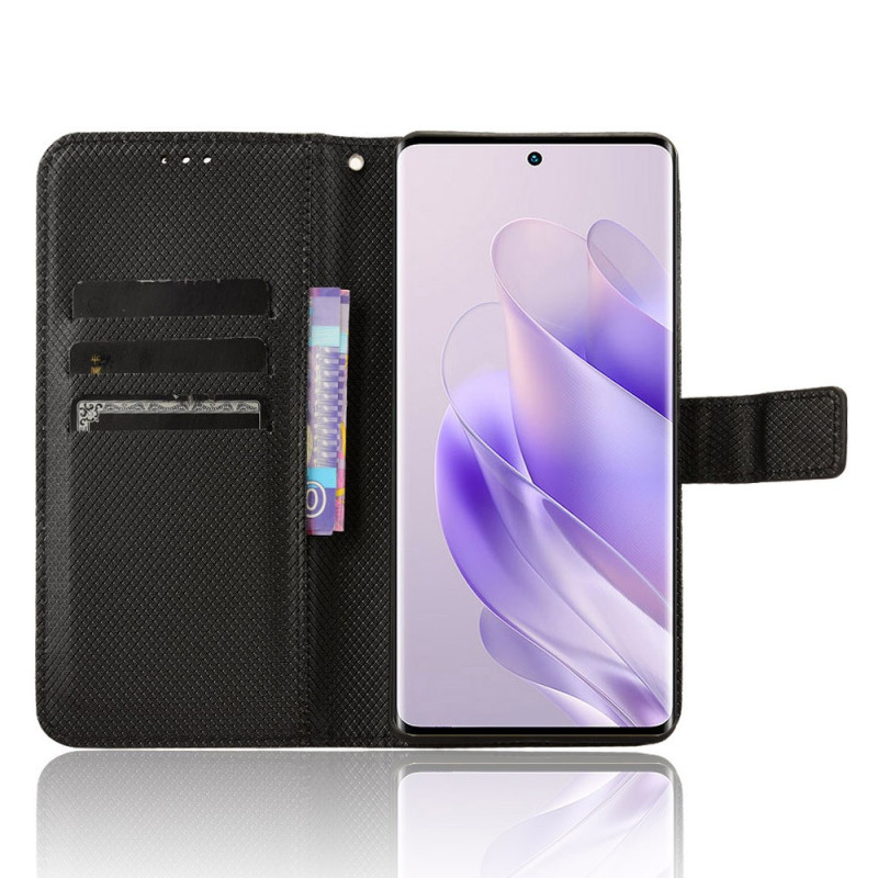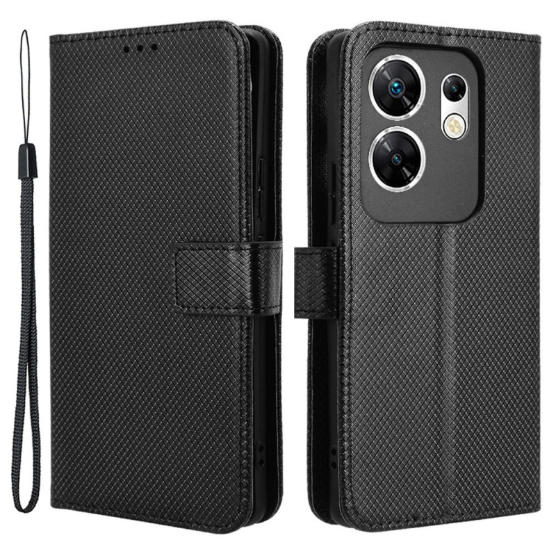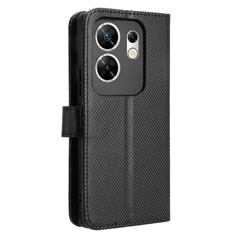 Elegante portemonnee hoes combineert stijl en bescherming voor uw Infinix Zero 30 4G X6731B. Geraffineerd ontwerp met diamantstructuur, geïntegreerde kaartsleuven en geldvakje. Opvouwbare standaard voor hands-free kijken.