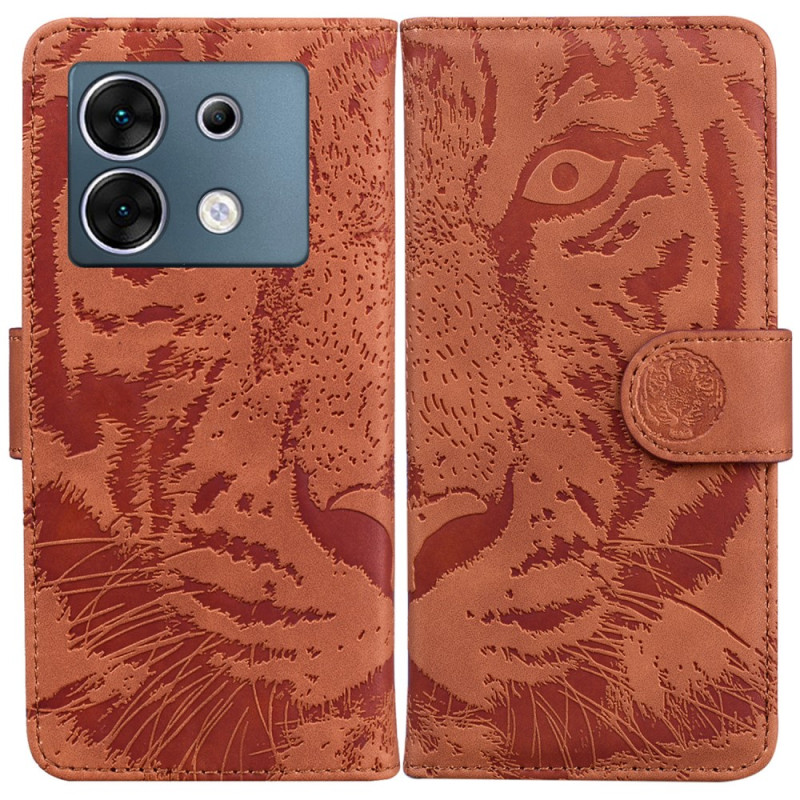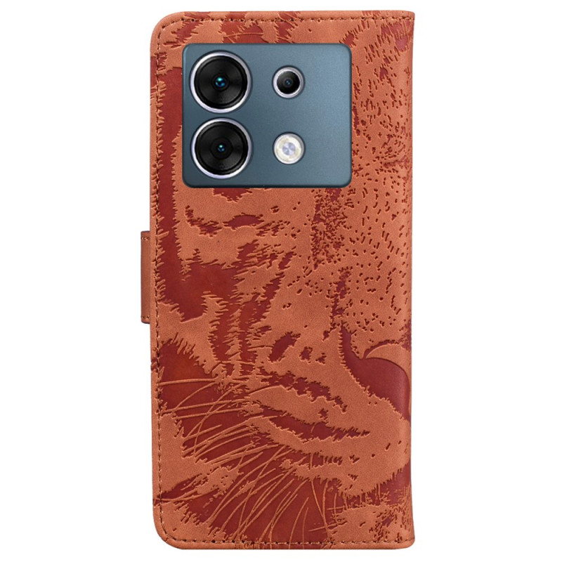 Bescherm je Infinix Zero 30 5G in stijl met deze magnetische case in een verfijnd tijgerontwerp. Met een geïntegreerde standaard, 2 kaartsleuven en een portemonneevak combineert het stijl en functionaliteit.