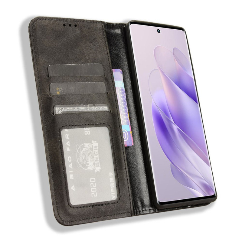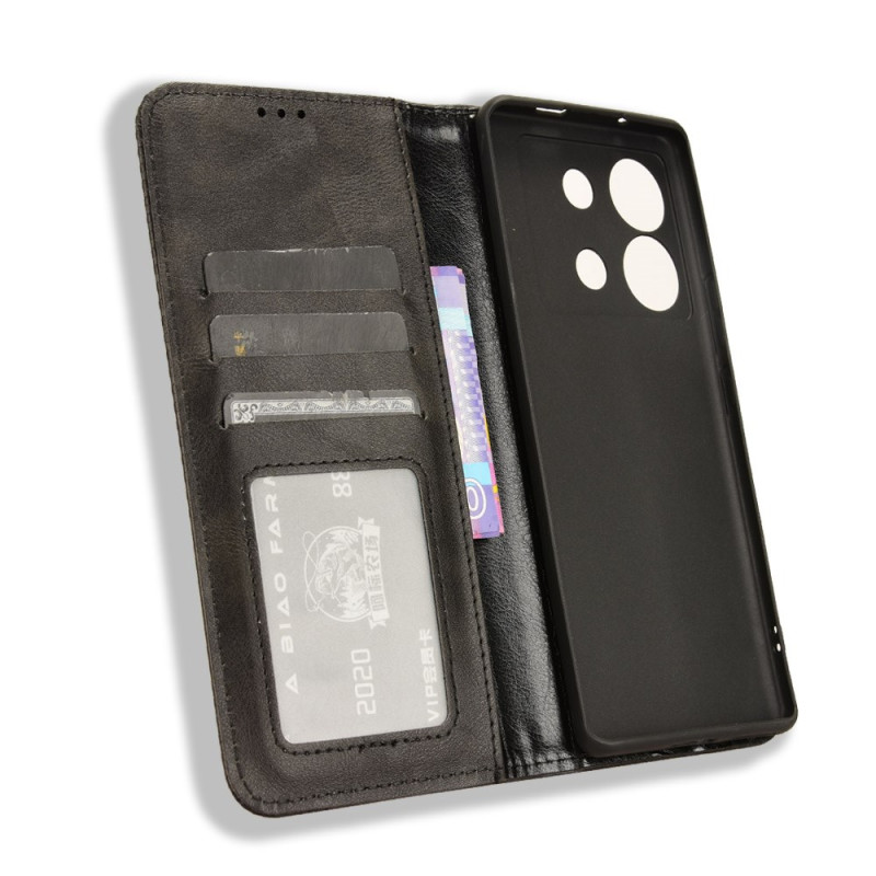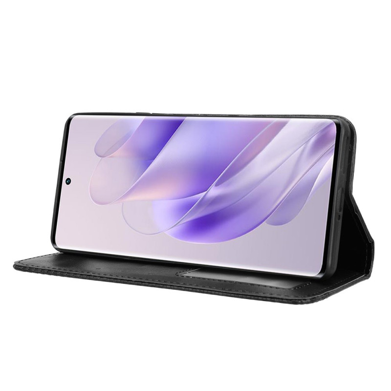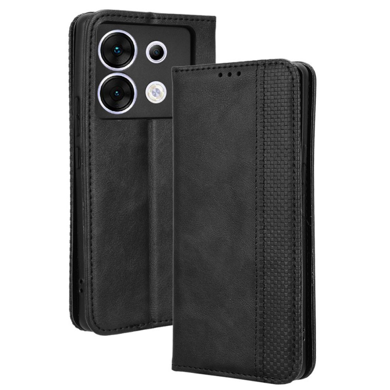 Elegante portemonnee hoes in retro PU leer voor Infinix Zero 30 5G. Verfijnd ontwerp met gegraveerde mozaïekrand, geïntegreerde kaarthouder en verstelbare standaard. Automatische magnetische sluiting voor volledige bescherming en praktisch dagelijks gebruik.
