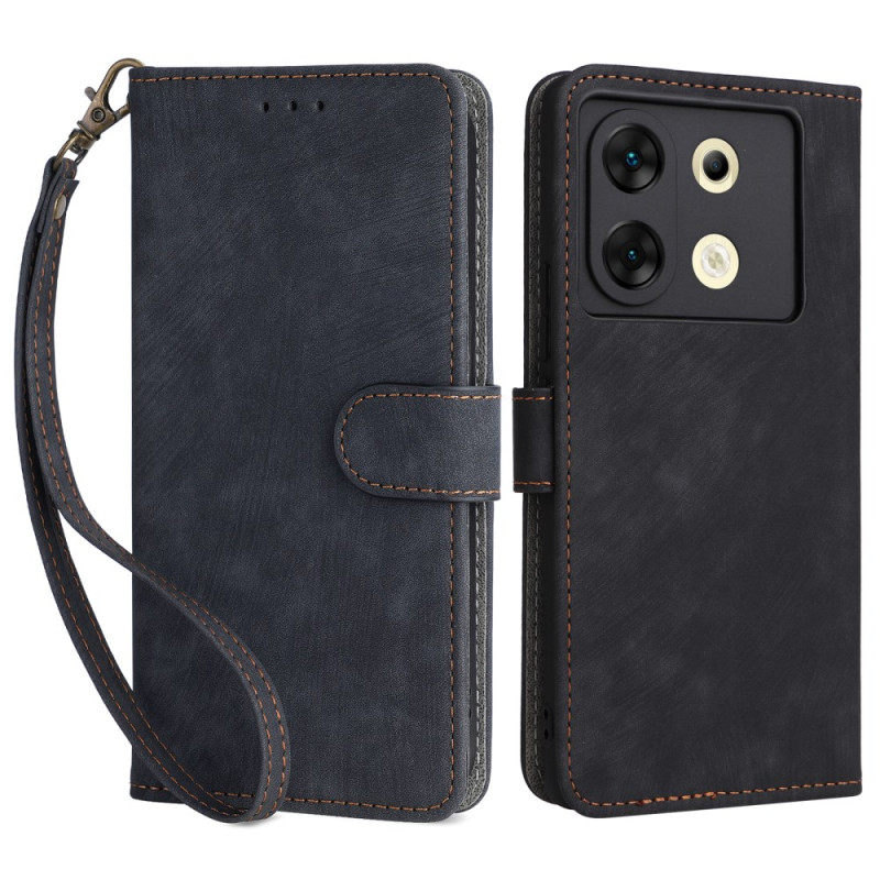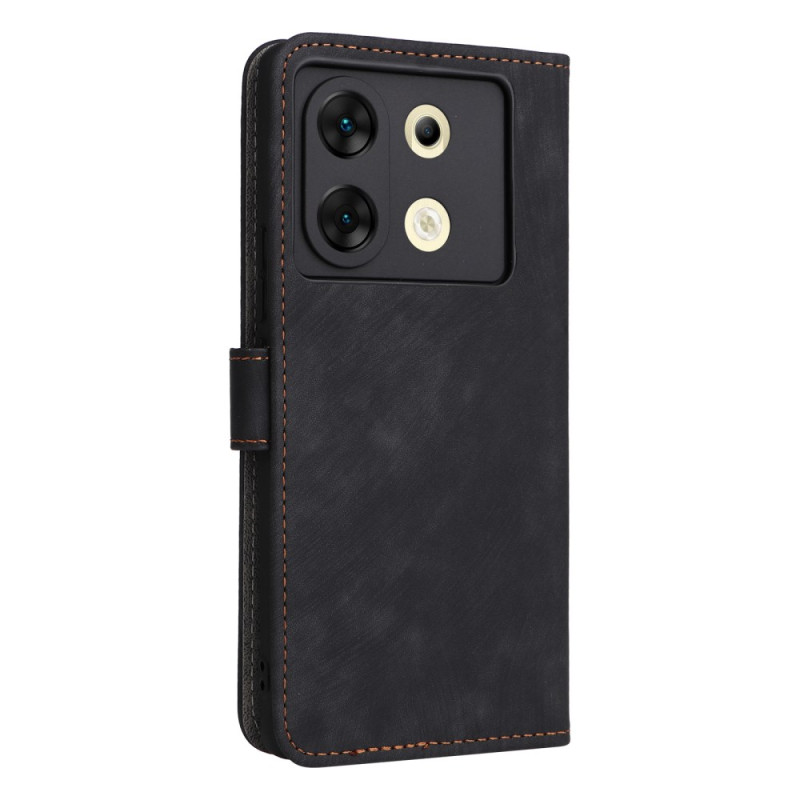 Premium PU lederen portemonnee hoesje voor Infinix Zero 30 5G met geïntegreerde RFID bescherming. Voorzien van 3 kaartsleuven, 1 geldvak, handsfree functie en praktische handriem. Veilige magnetische sluiting voor volledige bescherming van je smartphone elke dag.